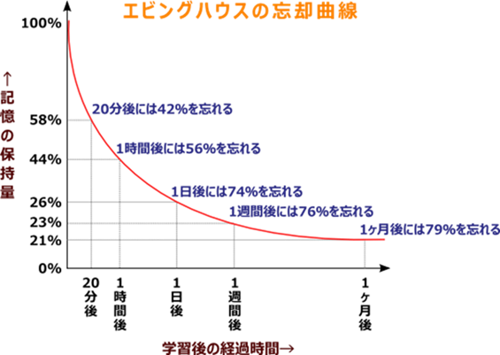 そのときこそ、この「エビングハウスの忘却曲線」を思い出してください。