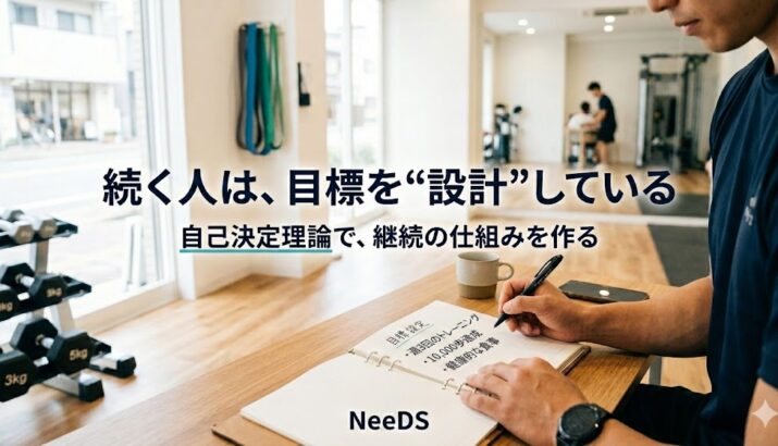目標を立てても続かない、やる気が波になる。そんな悩みを、六甲道・神戸のパーソナルジムNeeDS(ニーズ)が「自己決定理論」で整理します。